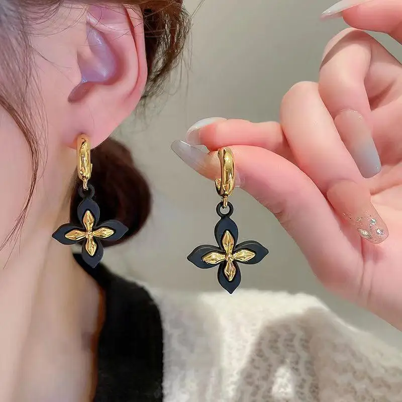 Gothic Large Cross Black Drill Jewel Earring Gold Color/ Silver Color Gothic Punk Jewellery Fashion Gorgeous Statement WomenGift